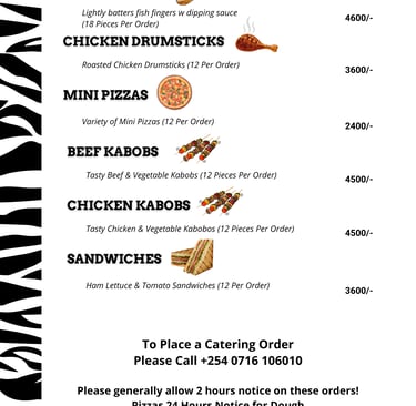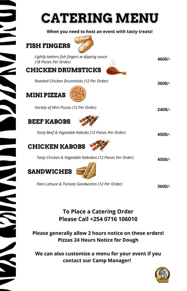 Our bar and restaurant serve a delightful selection of local cuisine and refreshing beverages. Savor the rich flavors of Kenya with our expertly prepared dishes, using the freshest ingredients. From hearty breakfasts to sumptuous dinners, and an array of drinks, there's something to satisfy every palate.